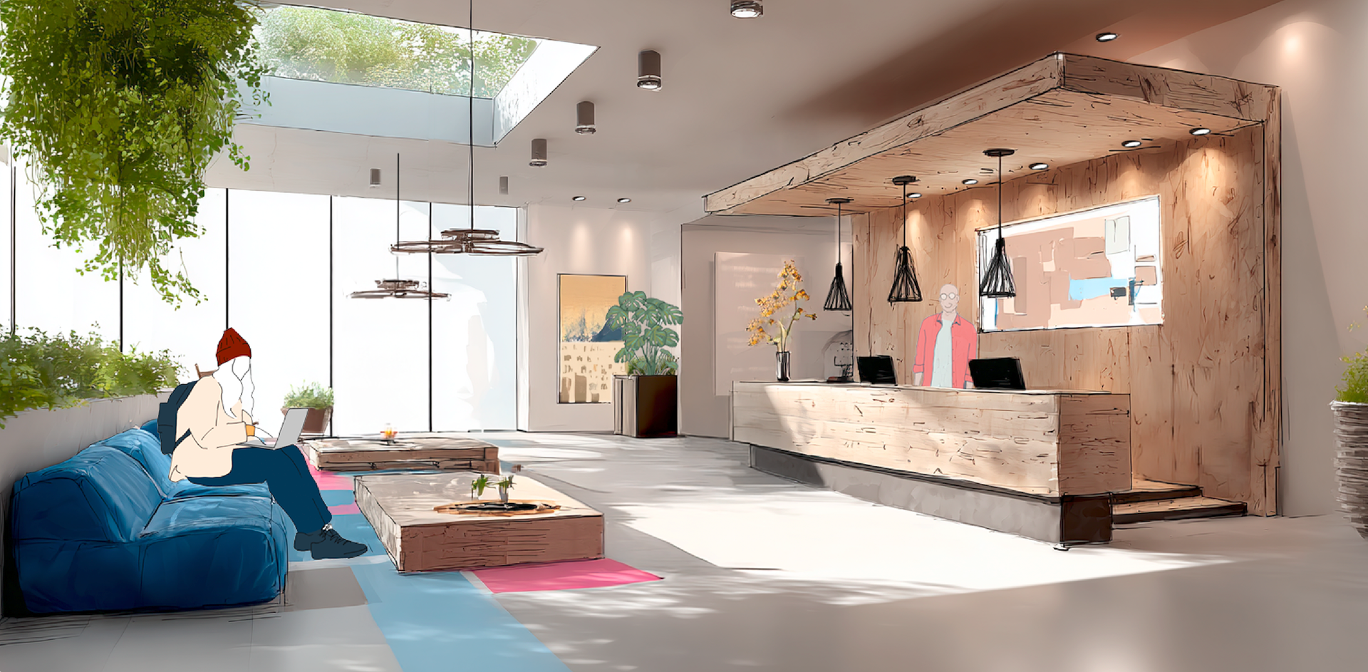 Here, the client wished for a space that feels both grounded and generous, an open lobby where natural light flows, wood breathes, and guests feel instantly at ease.